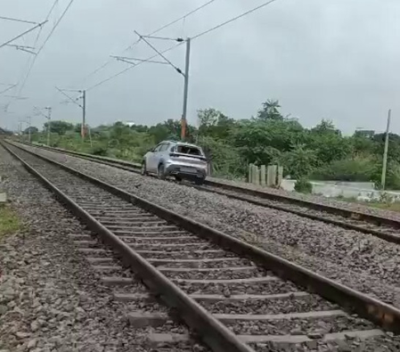 She drove the car for a distance of about seven kilometres between Nagulapalli and Shankarpalli. A train coming on the same track was stopped after the loco pilot applied the brakes on spotting the car, averting a disaster.
